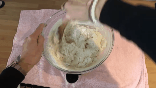 4. Añadir el agua y mezclar hasta conseguir una masa homogénea