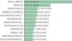 Como suele ser habitual en el listado aparecen muchas empresas del sector de la construcción tras el pinchazo de la burbuja inmobiliaria, capitaneadas por Reyal Urbis, que tiene una deuda superior a 353 millones de euros.