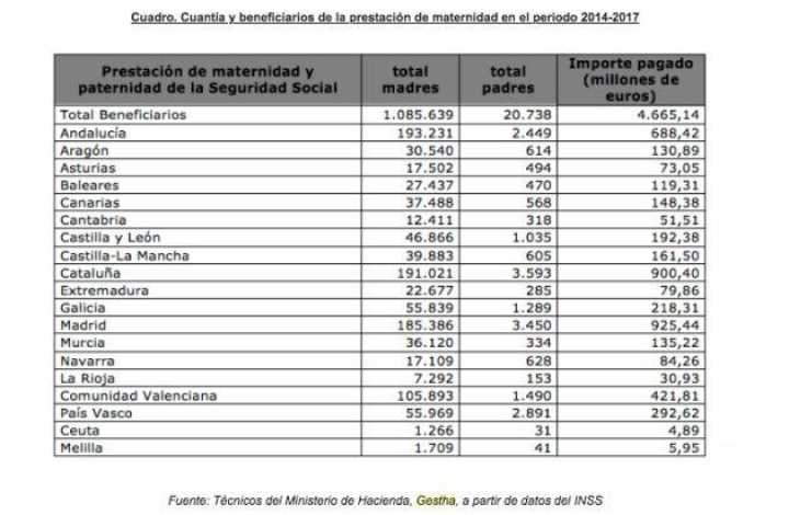 Estos son los cálculos de beneficiarios por la exención del IRPF de los permisos de maternidad por comunidades autónomas: