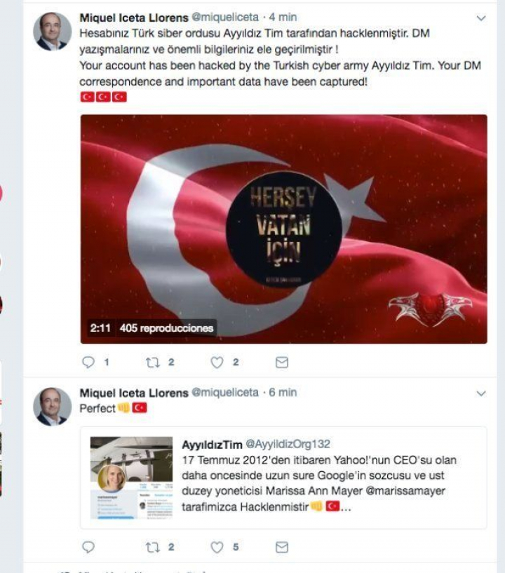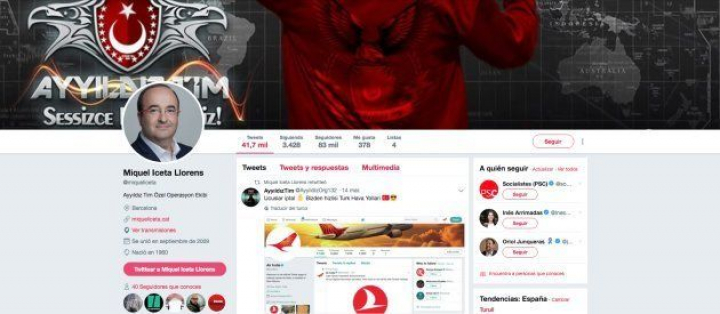 Mientras el líder del PSC atendía al discurso de Jordi Turull como candidato a la presidencia de la Generalitat, unos hackers se han apoderado de su cuenta y han publicado varios mensajes alabando la intervención de Turquía contra los kurdos en Afrin (Siria).