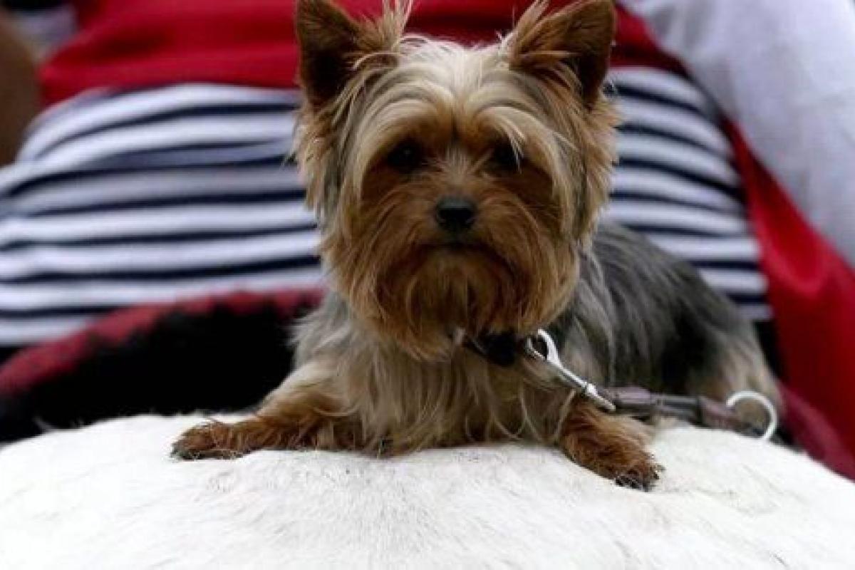 Un pequeño yorkshire que permaneció todo el tiempo junto a él ladrando