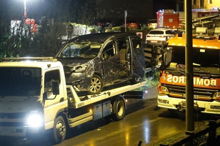 El accidente ha tenido lugar este domingo en el barrio de Osinaga, en un camino cercano a algunas sidrerías, sobre las 00.30 horas, cuando un Citroen Berlingo en el que viajaban cinco personas ha hecho una maniobra, se ha precipitado varios metros por una ladera y, tras dar varias vueltas, ha caído al río.