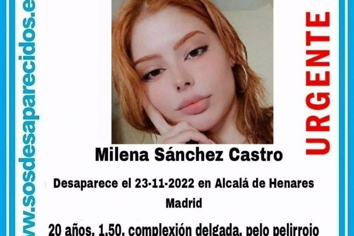 Agentes de la Policía Nacional han encontrado este lunes en una vivienda de Madrid el cuerpo sin vida de Milena Sánchez Castro, la mujer de 20 años vecina de Alcalá de Henares que desapareció hace unos días, y que ha sido asesinada, según han indicado a Europa Press fuentes policiales.