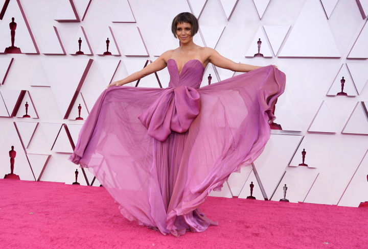 Halle Berry con su vestido de Dolce&Gabbana en la alfombra roja de los Oscar 2021.Chris Pizzello via AP