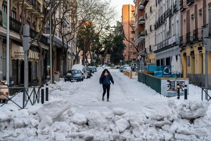 Los territorios que más las están sufriendo son Teruel y Guadalajara. Aunque no haya nevado tanto como en Madrid, se encuentran a mayor altitud y a su vez en una zona baja con respecto a las montañas circundantes. Es decir, están en un entorno en el que se acumula el aire frío. Sin embargo, en la zona del aeropuerto de Barajas se han llegado a registrar 13 grados bajo cero, indica el meteorólogo. “Es muy poco habitual que en un territorio tan grande se den temperaturas tan extraordinariamente bajas”, subraya.