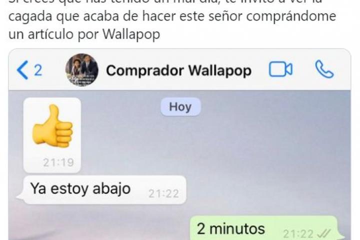 “Si crees que has tenido un mal día, te invito a ver la cagada que acaba de hacer este señor comprándome un artículo por Wallapop”, ha escrito el receptor del comentario, que ha compartido en Twitter una captura con la conversación.