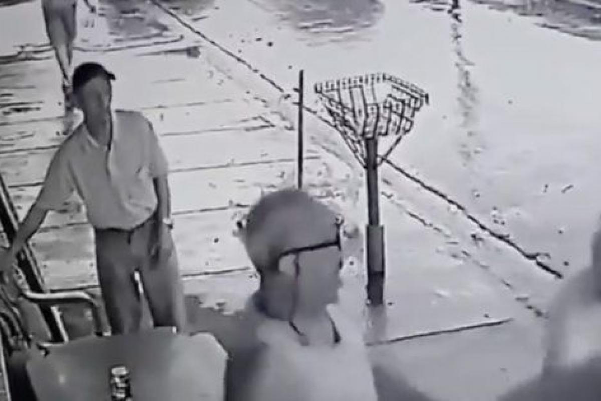 En las imágenes se ve cómo comienza una pelea. Unos hombres la emprenden a golpes entre ellos incluso con sillas.