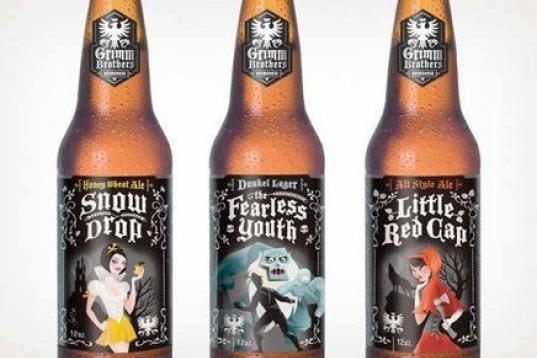 La cerveza artesanal de Colorado Grimm Brothers sacó a la venta en 2012 esta edición dedicada a los cuentos clásicos. El original packaging fue una creación del estudio estadounidense The Collective Tenfold. Había cerveza de Caperucita, Bla...