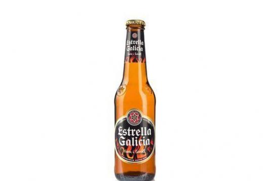 La edición limitada de Estrella Galicia para las fiestas de 2014. El fuego decoró la etiqueta que portaba el lema Estrella Galicia Fum i Soroll (Estrella Galicia Humo y Ruido).