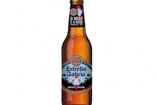 La botella de Estrella Galicia para el equipo celeste.