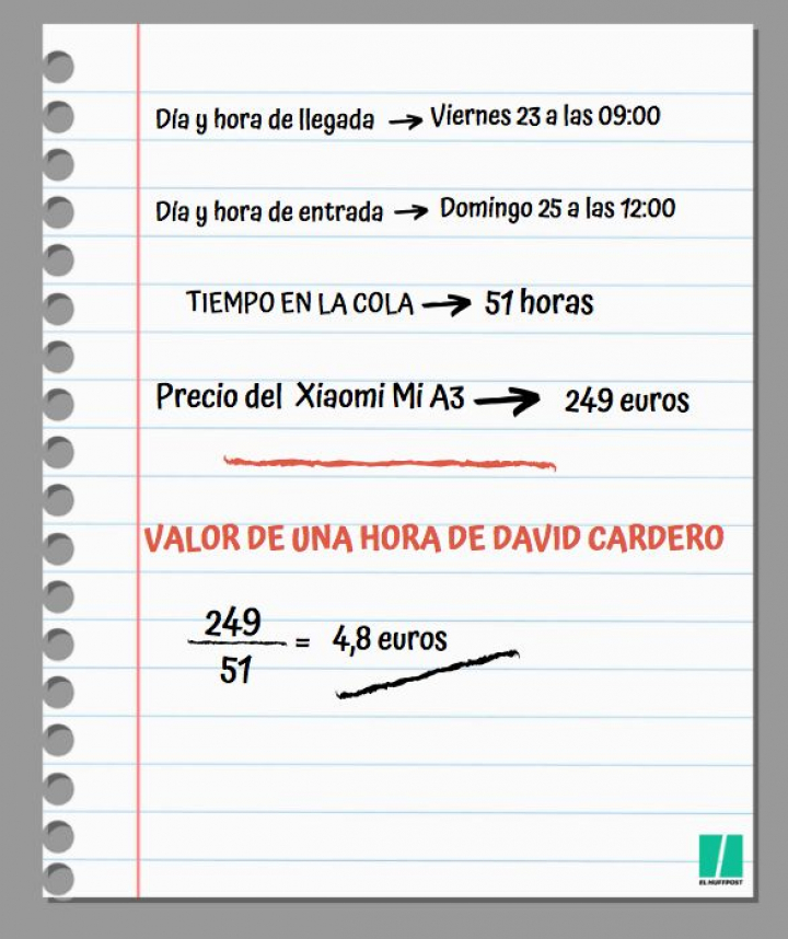 Anécdotas a un lado, a Cardero no le salió demasiado barato el móvil. El joven de Arroyomolinos (Madrid) pasó 51 horas en la cola —según contó en El País llegó el viernes a las 9:00 horas— y no abandonó la primera posición en ningún momento.