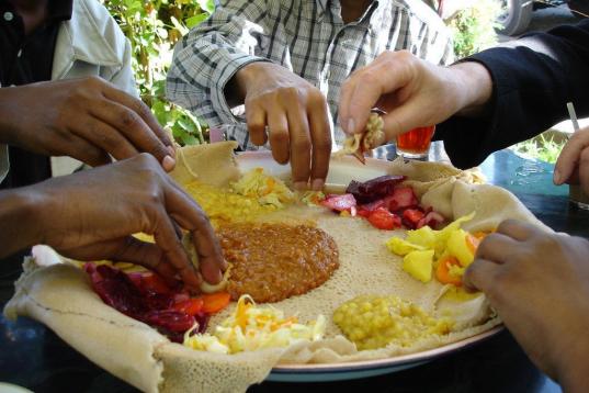 En Etiopía, utilizar platos individuales se considera un desperdicio. Todos comen del mismo plato y con la mano. El protocolo ante la mesa en ese país sugiere que la carne sea lo último que se come.
