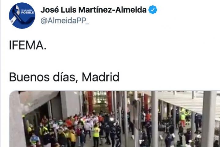 Consternación por el vídeo de IFEMA que ha compartido Almeida en Twitter: el motivo se ve en la foto