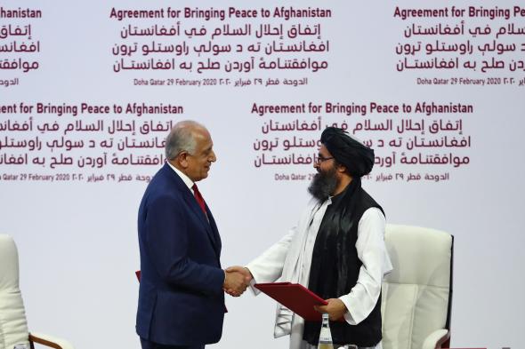 El pacto fue firmado por el representante especial de Estados Unidos para la paz, Zalmay Khalilzad, y el líder talibán, mulá Abdul Ghani Baradar.