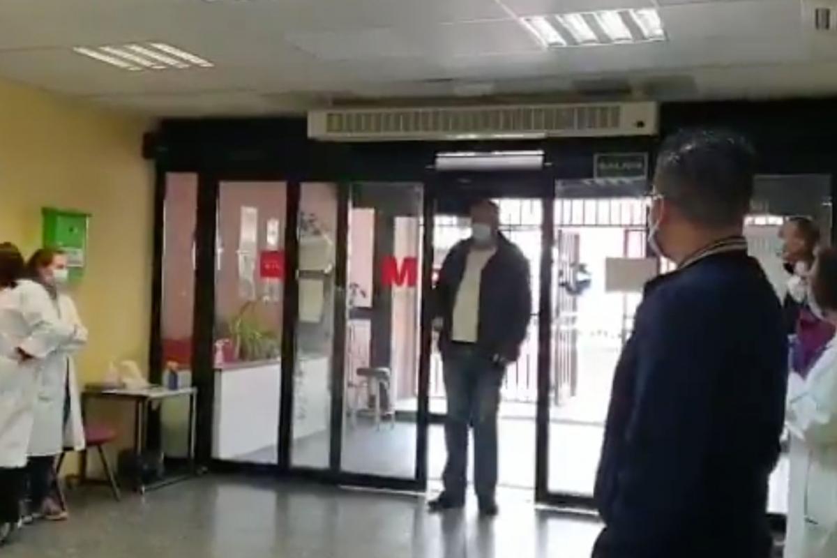 Es una de las imágenes de este sábado relacionadas con la pandemia del coronavirus: sanitarios del centro de salud Ramón y Cajal de Madrid aplaudiendo a un hombre que acaba de entrar al centro médico.