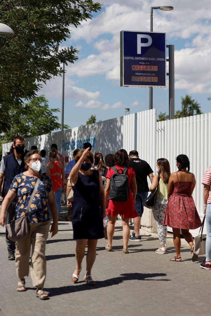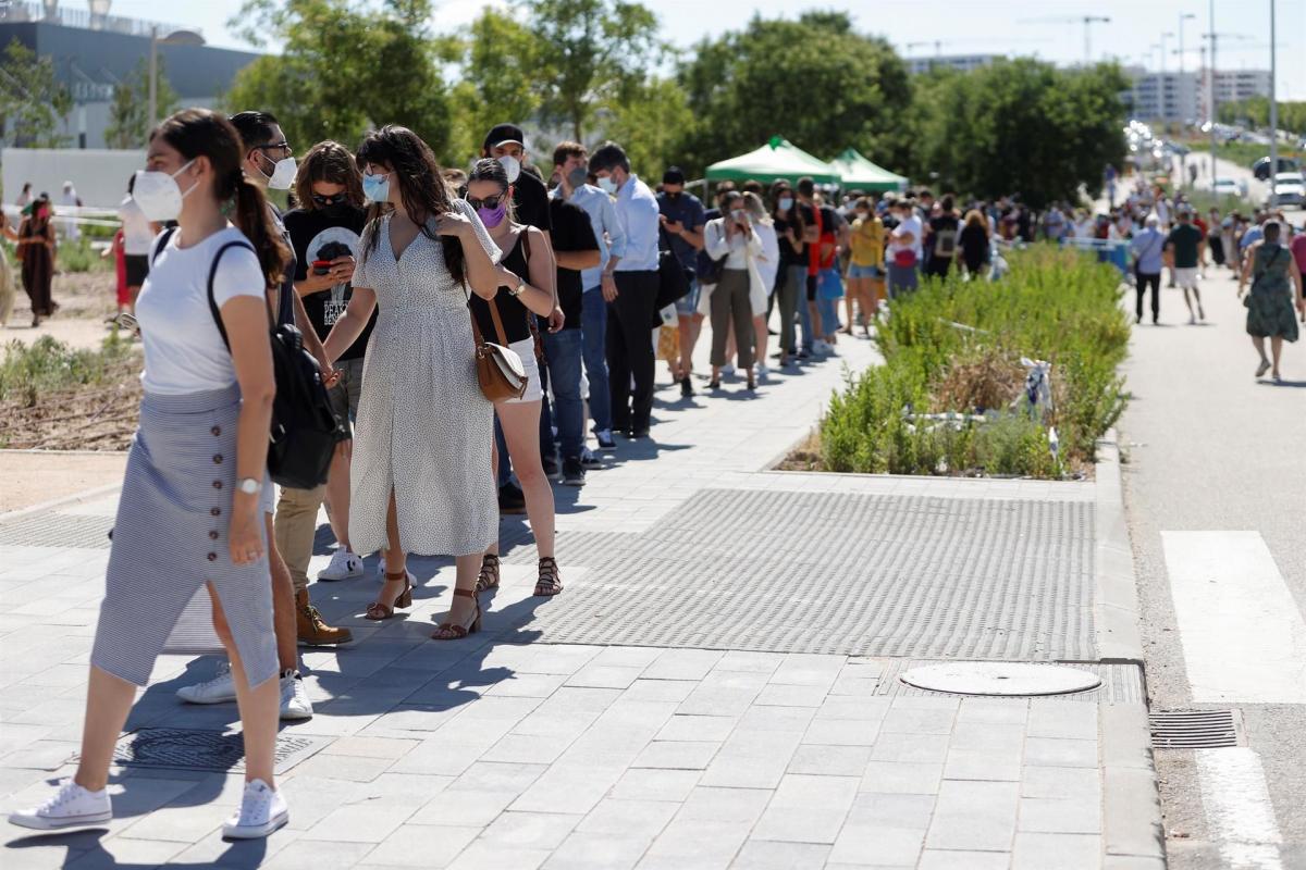 Dos horas bajo el sol en la puerta del Zendal por el aumento de un 40% de citas para vacunar