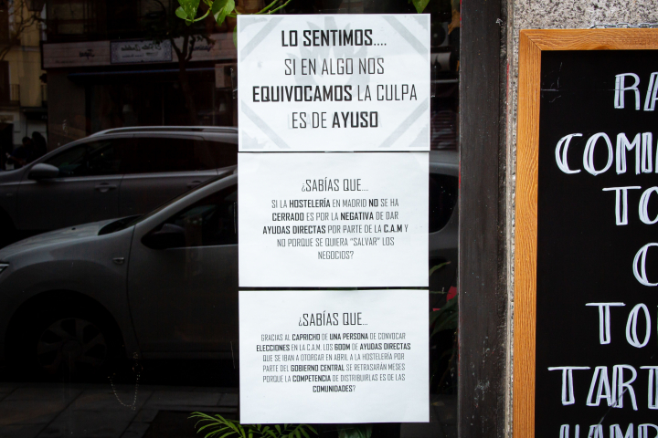 Madrid, la única comunidad que todavía no ha dado ayudas directas a la hostelería, se escuda en que la mejor ayuda es permitir que abran los bares y restaurantes. Para muchos hosteleros, esto no basta.
