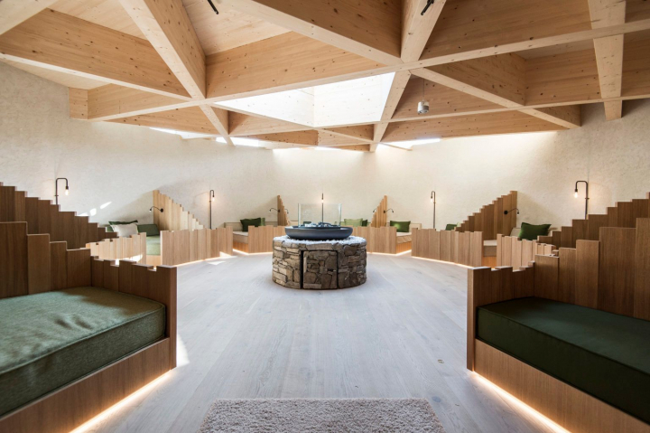 Entre las aficiones de sus anfitriones está la arquitectura y su estrecha relación con la naturaleza en el Tirol. La extensión semicircular que ocupa el hotel se encuentra en armonía con los prados de Geiselsberg, llegando a fusionarse de alguna manera.