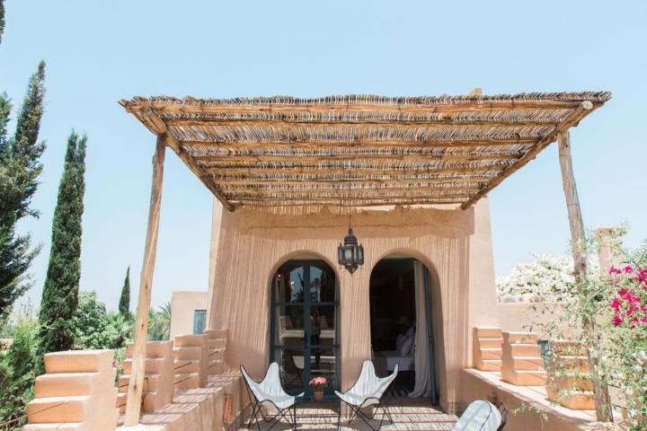 El hotel Beldi es uno de los hoteles más especiales y se encuentra a tan solo 10 minutos del centro de Marrakech, está rodeado de varias hectáreas de jardines y árboles que proporcionan una sombra de lo más característica. Sus casas de adobe y riads completan el paisaje del que te enamorarás nada más verlo.