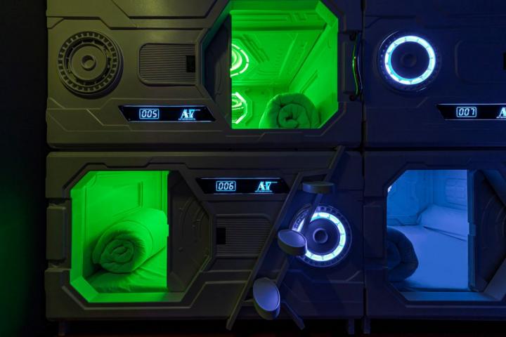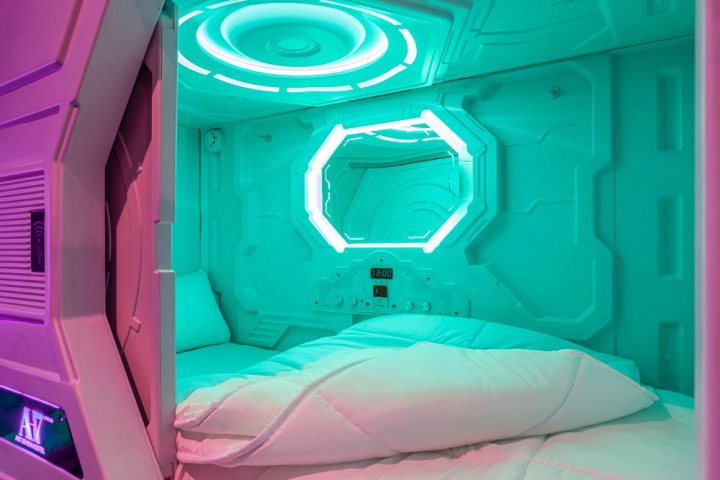 Alojarse en sus futuristas cápsulas oscila entre los 30 y los 50 euros. El hostal cuenta con 18 camas dobles y 30 individuales, todas ellas equipadas con una pequeña caja fuerte. Los huéspedes pueden controlar las luces de colores y también la temperatura.