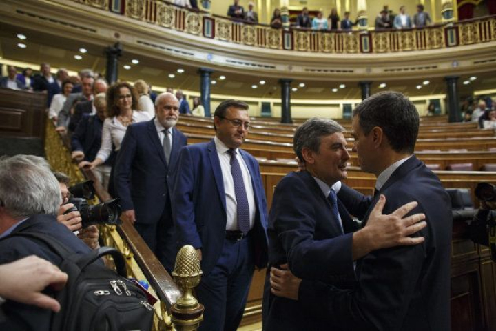 En las horas previas al comienzo de este debate, Pedro Sánchez no tenía donde sentarse. La presidenta del Congreso le colocó en su antiguo puesto, a la cabeza del grupo socialista. Podía haberle asignado una silla en cualquier en otro lugar del hemiciclo. En 48 horas Pedro Sánchez ha conseguido el asiento más codiciado, el primero del banco azul, el del Gobierno. El resto del hemiciclo no sale de su asombro, ni los suyos consiguen digerir lo que ha pasado.