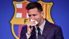 Barcelona's Lionel Messi from Argentina reacts after losing the Copa del Rey soccer match between FC Barcelona and Real Madrid at the Camp Nou stadium in Barcelona, Spain, Tuesday, Feb. 26, 2013. (AP Photo/Manu Fernandez)