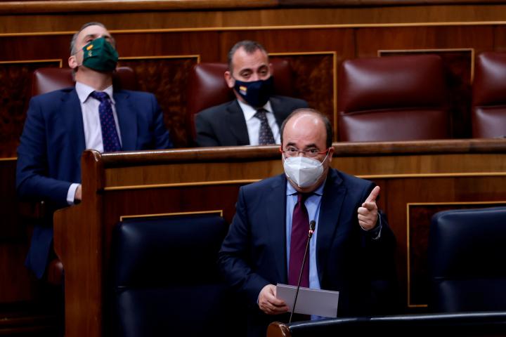 Vox, PP, Cs, ERC y Junts han martilleado a Iceta con las ocho naciones, con la política territorial respecto a Cataluña... En definitiva, todos han querido sonsacarle los planes que tiene para resolver el conflicto catalán. Pero el nuevo ministro ha recurrido a la llave del régimen del 78 para arrancar el motor de la solución. “En la Constitución cabemos todos”, ha remachado.