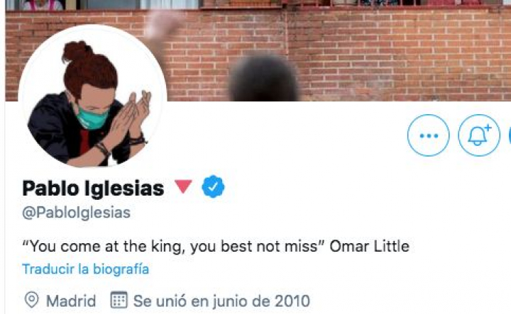 El exlíder de la formación morada ha escogido una frase de la serie estadounidense The Wire: “You come at the king, you best not miss” Omar Little —“Si vienes a por el rey, será mejor que no falles”—.