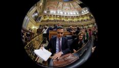 De la puerta del Sol, rozando ya La Moncloa. Pablo Iglesias (Unidas Podemos? ha subido a la tribuna durante el Pleno de investidura de Pedro Sánchez con un tono ya de ‘vice’: “Adelante, presidente”, le ha dicho al final.