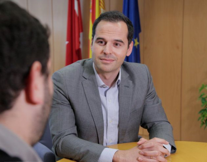 En la segunda planta del edificio tiene su despacho Ignacio Aguado, el portavoz de Cs en el Parlamento regional. Los votos naranjas sirvieron a Cifuentes para ser investida y sacar adelante la primera parte de la legislatura. Ahora ha perdido su confianza. Aunque en Cs tardaron veinte días en pedir su dimisión, repiten que no hay marcha atrás. El plan A: que el PP ponga un candidato "limpio" que sustituya a la presidenta hasta mayo de 2019. Está "en las manos de Rajoy". Aunque espera no tener que llegar al plan B, el dirigente 'ciudadano' dice que si no se aparta la presidenta, apoyará la moción del PSOE: "Gabilondo no es sospechoso de ser una persona de izquierda radical".