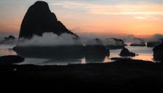 El terreno de montaña siempre es imprevisible y a pesar de ir en verano, los días anteriores el mal tiempo había estado azotando la zona, que se encontraba bajo la nieve y la niebla. Así que cuando llegue a pie del lago no se veía absolutamente nada. Decidí quedarme un día más en una tienda en un campamento a pesar de que los dueños avisaban que el mal tiempo les había impedido que llegaran las provisiones y el gas. Básicamente por no tener no había ni opción de tomarse un té. Así que pasé el día en un saco en una tienda de campaña con lo poco que llevaba en la mochila para comer esperando que el tiempo mejorara y pudiera al menos ver el lago. Fue imposible hasta la madrugada del día siguiente en que una ventana en el cielo permitió por unos minutos disfrutar del paisaje y del entorno.