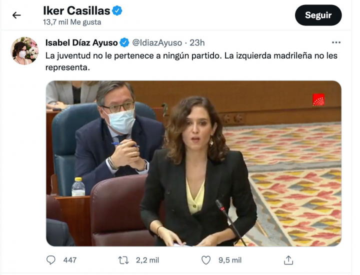 Iker Casillas sorprende en Twitter al dar 'me gusta' a este mensaje de Ayuso