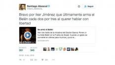 “Esta mañana me refería a esto. Muy triste. Los linchadores de la red, todos a una, insultando porque pensaban que me refería a algo del congreso. Ejemplo exacto de como todo se politiza con cierto interés. Qué pena y qué asco”, ha añadido Jiménez en otro tuit.