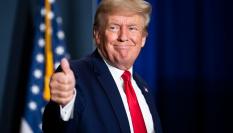 Un seguidor del expresidente muestra una pancarta en su apoyo desde Florida.
