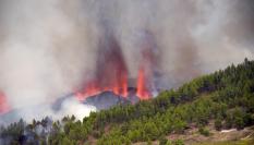 El río de lava se abre paso entre la vegetación y hacia las localidades cercanas