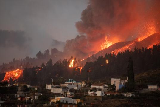 La erupción desde la vecina localidad de Los Llanos de Aridane, que ha sufrido graves destrozos
