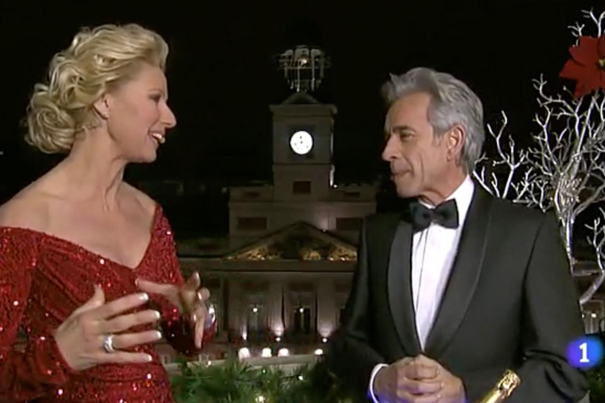 Se trata de este momento de las Campanadas 2013 de TVE protagonizado por la presentadora Anne Igartiburu y el actor Imanol Arias (Cuéntame).
