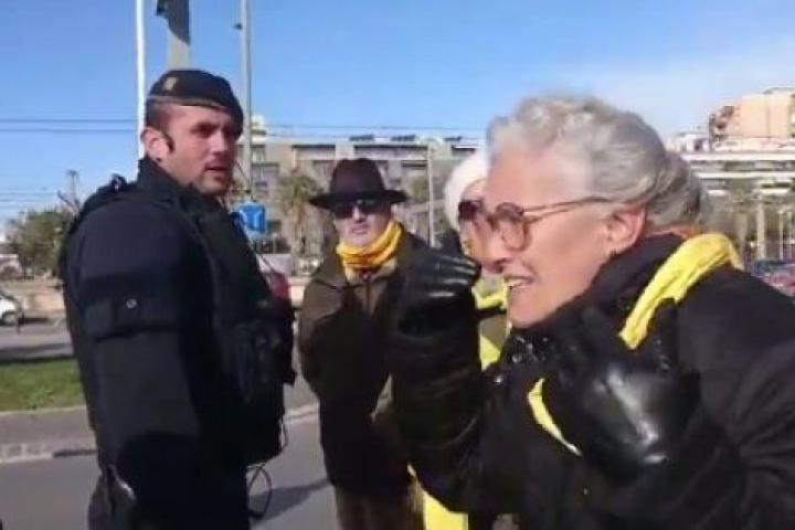 En el vídeo se ve cómo una de las mujeres pregunta a uno de los agentes por qué consideran que crean "conflicto". Otra de ellas añade: "No pasamos porque llevamos bufandas amarillas. Este es el motivo por el que no nos dejáis pasar", asegura mientras el agente al que se dirige asiente.