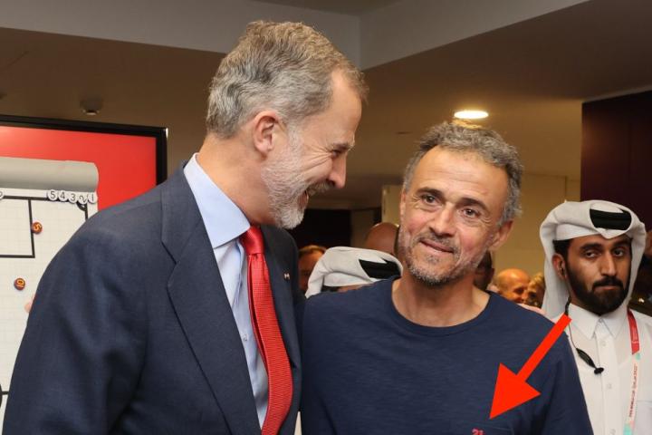 Imposible no fijarse en el símbolo de la camiseta de Luis Enrique cuando saludó al rey