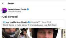 “Llevo 15 minutos en una moto para recorrer 200 metros de la calle Mayor. La gente se está bajando de los taxis. Estamos en puente, en pleno puente aunque sea día laborable. Esto es Madrid Central, la mejora del tráfico, de la contaminación... Esto es imposible”, recriminó entonces el actual regidor madrileño.