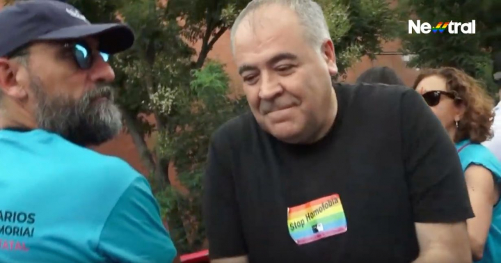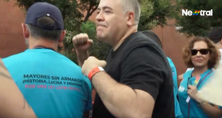 Se trata de Antonio García Ferreras, director de LaSexta y presentador del programa Al Rojo Vivo, dándolo todo en la carroza de Newtral en el desfile del Orgullo.