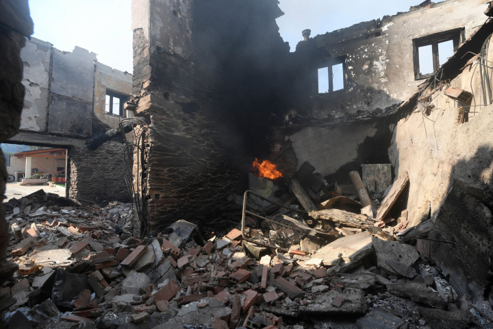 La evolución a peor del frente del Barco de Valdeorras (Ourense) ha hecho que el fuego toque ya León tras arrasar cerca de 10.000 hectáreas de terreno, entre ellas parte del Parque Natural de Invernadeiro. Poco más al norte, en Folgoso do Courel también se ha visto afectada otra reserva natural, la de la Sierra do Courel, parte de las más de 7.000 hectáreas perdidas.