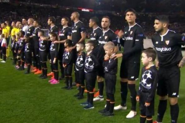 Mientras sonaba el himno de la Champions, que siempre suena antes de que empiece el choque, los aficionados del Sevilla desplazados a Mánchester han cantado el famoso himno sevillista creado por El Arrebato.