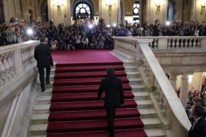 Eso sí; hubo un papel firmado. Una declaración política -que no parlamentaria- de independencia, y Els Segadors, todo desprovisto de la solemnidad que se esperaba en un gobierno tan fino en las puestas en escena.