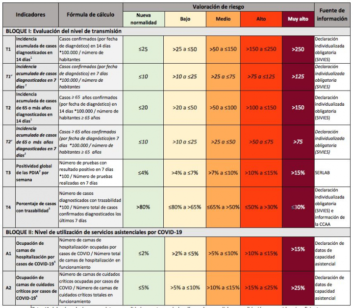 El resultado de los indicadores colocará al territorio en un nivel de riesgo que se corresponde con cuatro niveles de alerta, cada uno de los cuales tiene asociado una serie de medidas.