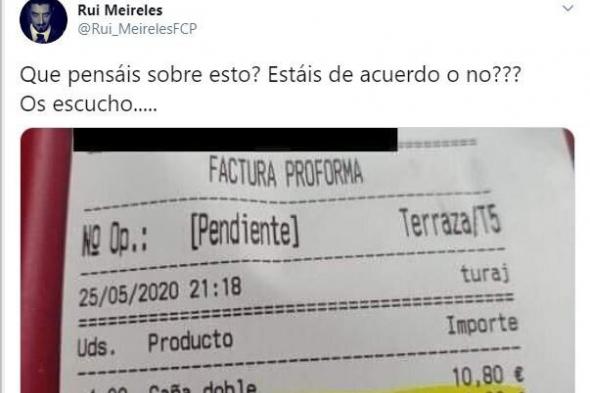 El usuario de Twitter Rui Meireles ha generado indignación en Twitter al mostrar la cuenta de un restaurante de Canarias del pasado 25 de mayo.