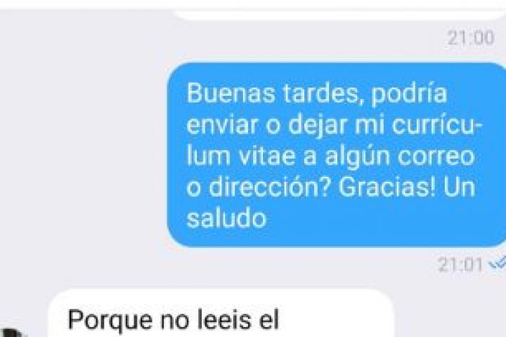 La respuesta que se encontró no la esperaba en absoluto: ”¿Por qué no leéis el anuncio?”. El usuario replicó: ”¿Cómo?”. Y el restaurante se reafirmó: “Lo que oyes, no tienes experiencia y me haces perder el tiempo”.