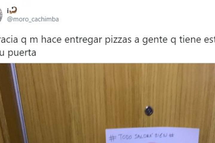 Precisamente, ha sido un trabajador de una cadena de pizzerías el que ha despertado la indignación de Twitter con el cartel que se encontró en la puerta del domicilio al que llevaba el pedido.