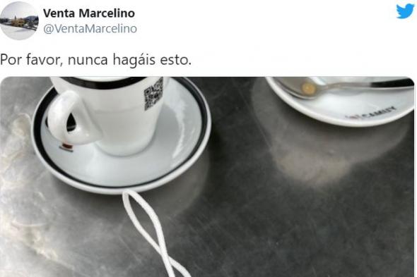 “Por favor, nunca hagáis esto”, reza la cuenta del restaurante adjuntando la foto de una mascarilla hecha una pelota dentro de una taza de café. Algo que supone un grave peligro de contagio para la persona encargada de recoger y limpiar la mesa. Además de ser una “cerdada”, como dicen muchos tuiteros.