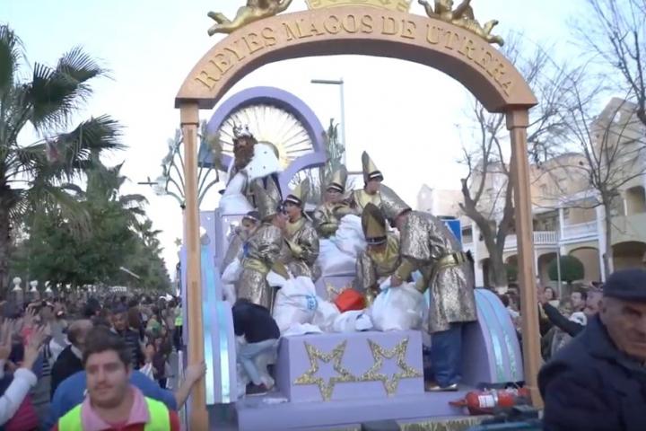 Así sucedió en la cabalgata de Reyes de Utrera, que organiza la asociación Maestro Milla. Durante el acontecimiento, que reunió a 20.000 personas, según datos de la propia entidad organizadora, se tiraron desde las carrozas objetos que distan mucho de los tradicionales caramelos, juguetes y dulces navideños.